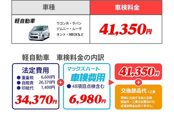 ※上記は参考金額です。年式等によって法定金額の費用が変わることがあります。